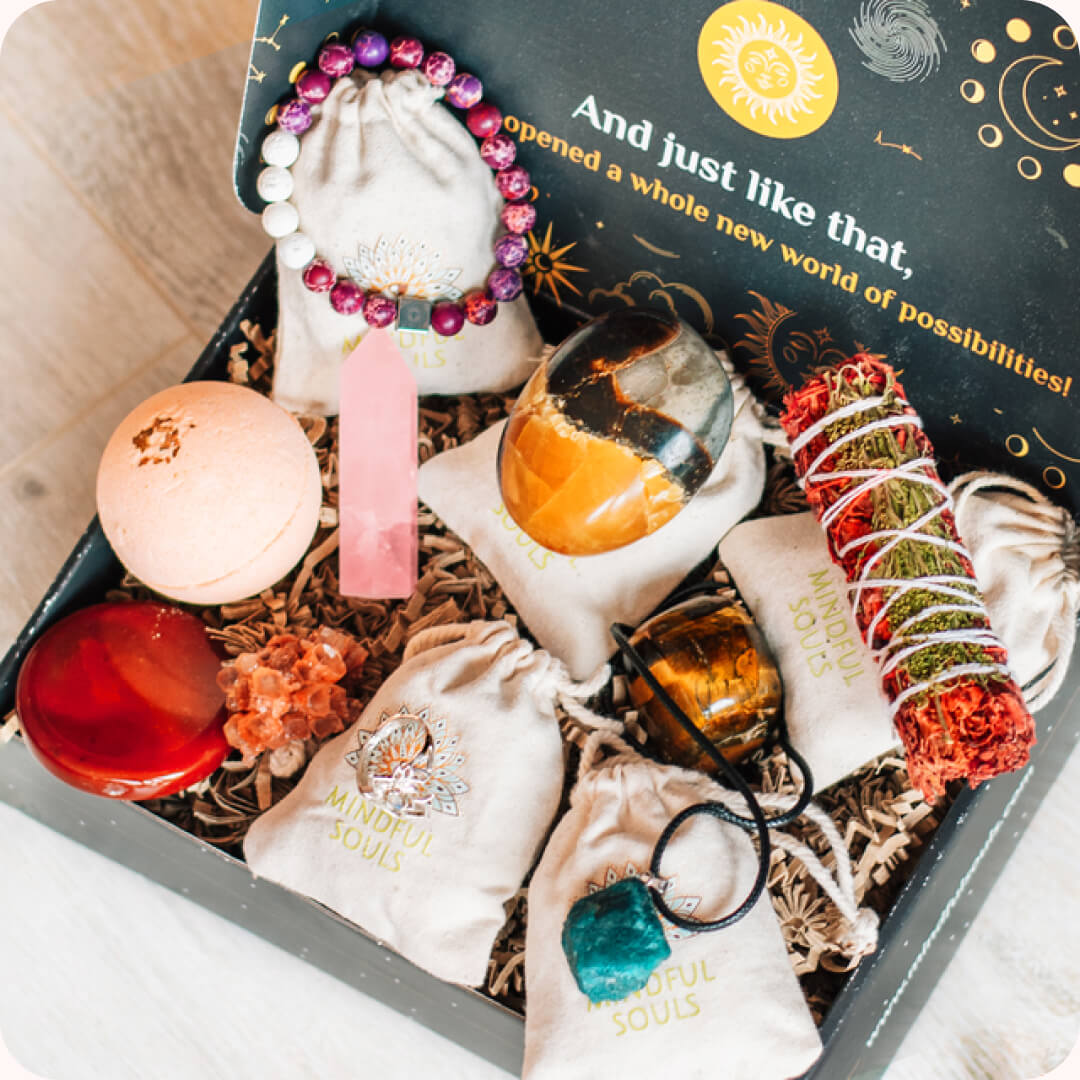 Mindful Box is a subscription service that delivers a curated selection of self-care and spiritual tools to your doorstep every month. Each box contains 6-8 genuine, handpicked items, worth over $100, including: