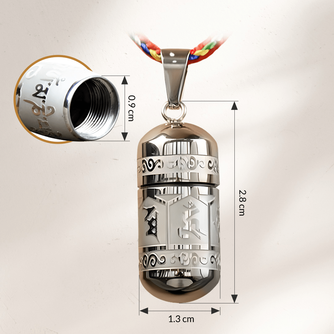Ancient Protection: The exterior features the complete Om Mani Padme Hum mantra, known for its protective properties.