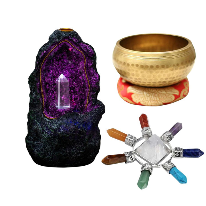 The Meditation Sanctuary Bundle brings together three powerful modalities, sound healing, aromatherapy, and crystal energy, to create a complete sensory experience that guides you into genuine presence.